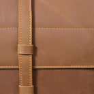 This leather bag for both men and women boasts a stunning wide leather flap that fastens with a sleek leather strap. For added security, a reliable YKK zipper located beneath the flap effectively safeguards your belongings.